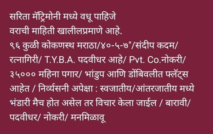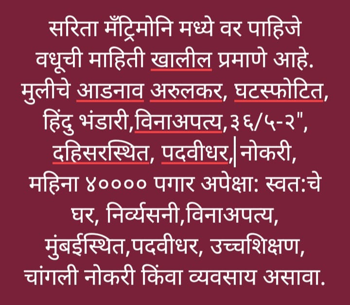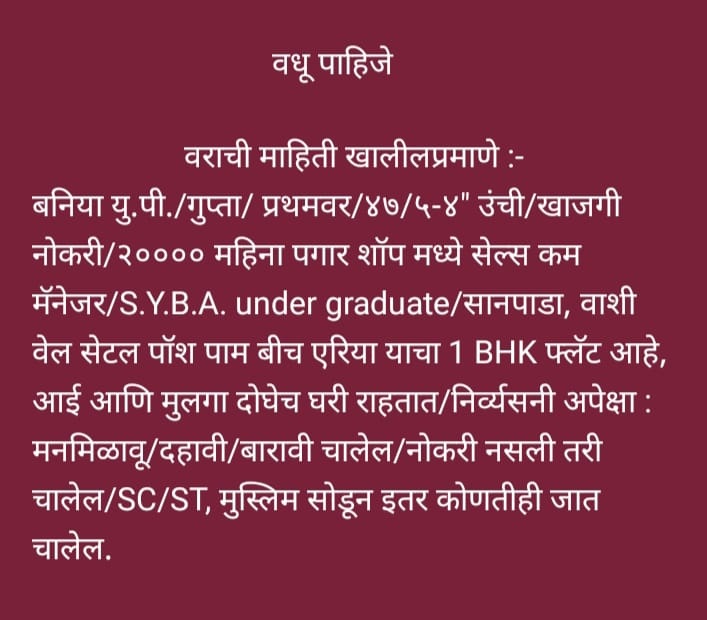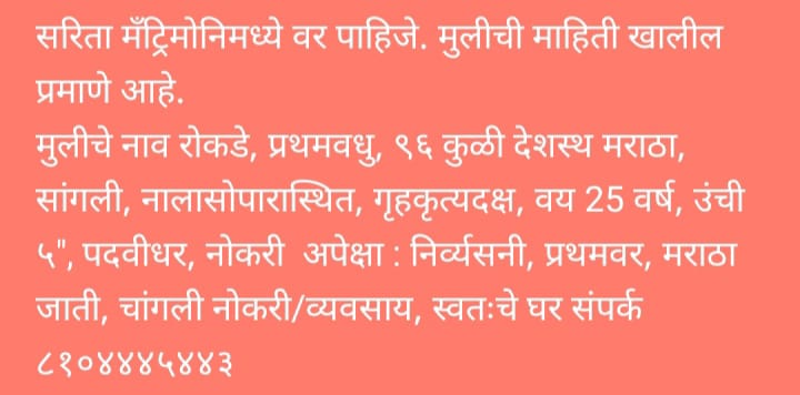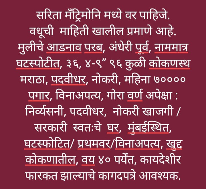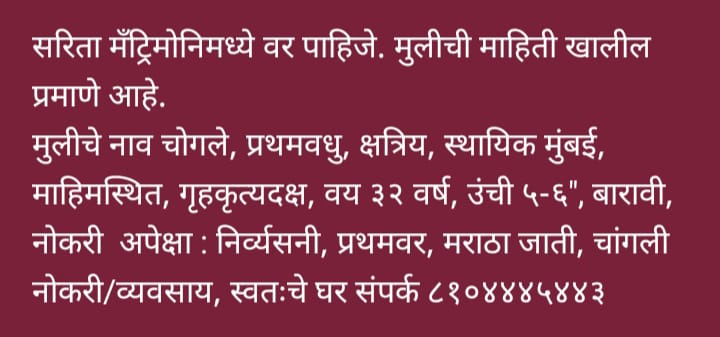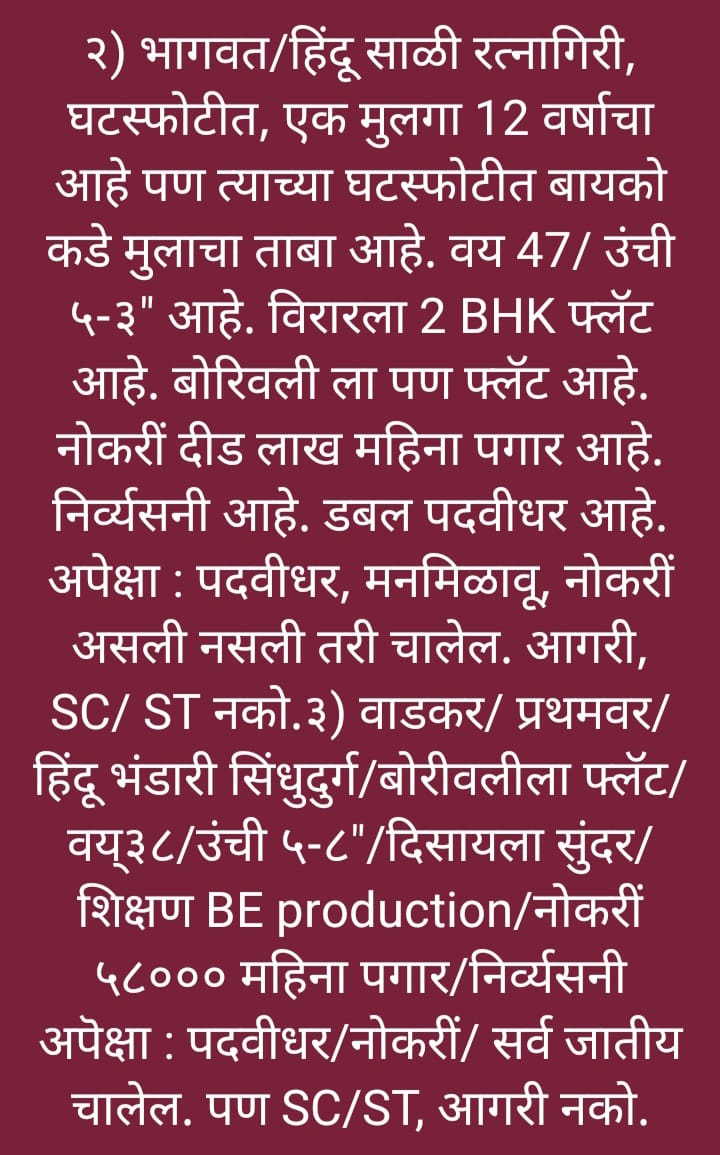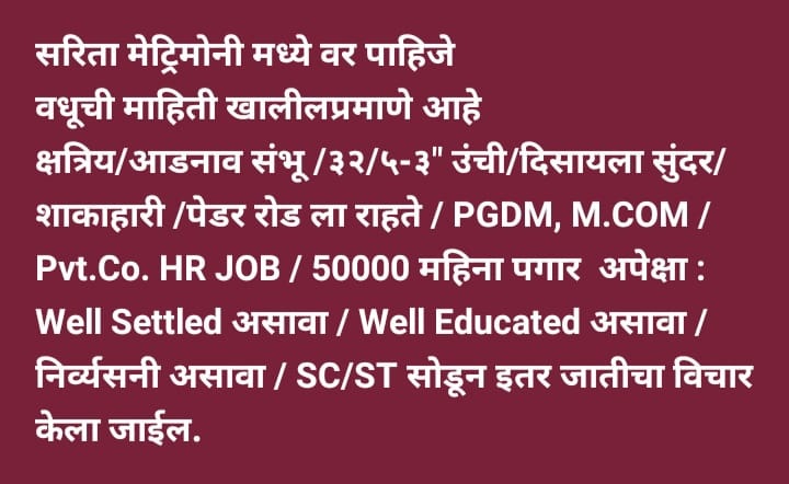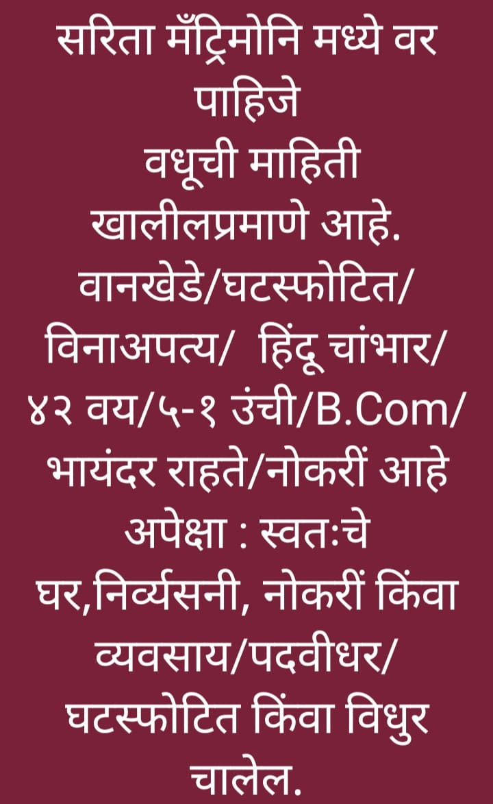 Home About us Services B2B Services Non B2B Services Gallery Team Contact us Search START TYPING AND PRESS ENTER TO SEARCH Gallery Bride and Groom Melava done on dtd.9th April, 2025 at Location Andheri East Mumbai SARITA MATRIMONY Sarita Matrimony through this Divorce Marriage is Sucessed.